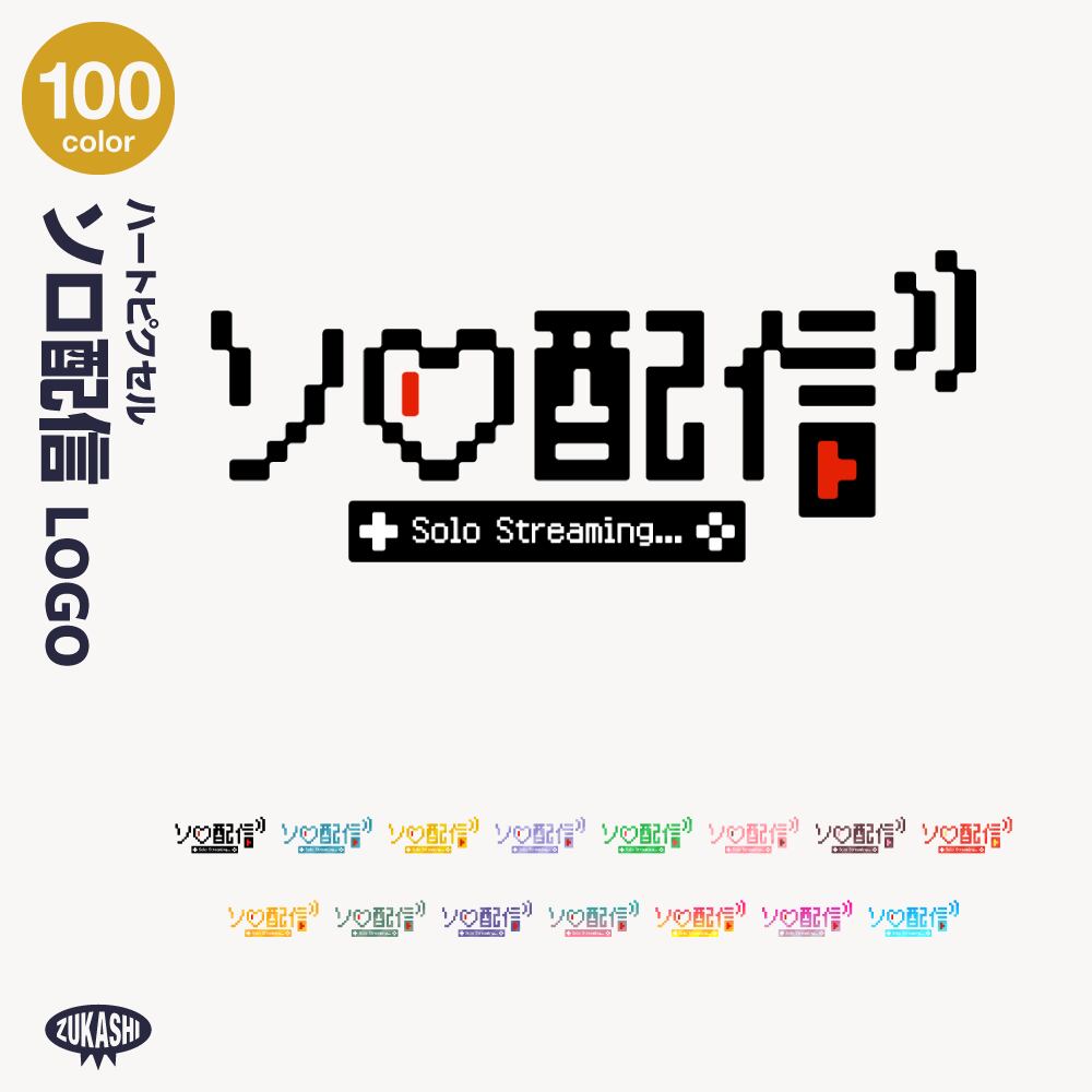 ハートピクセル ソロ配信ロゴ【フリー素材・サムネ素材】