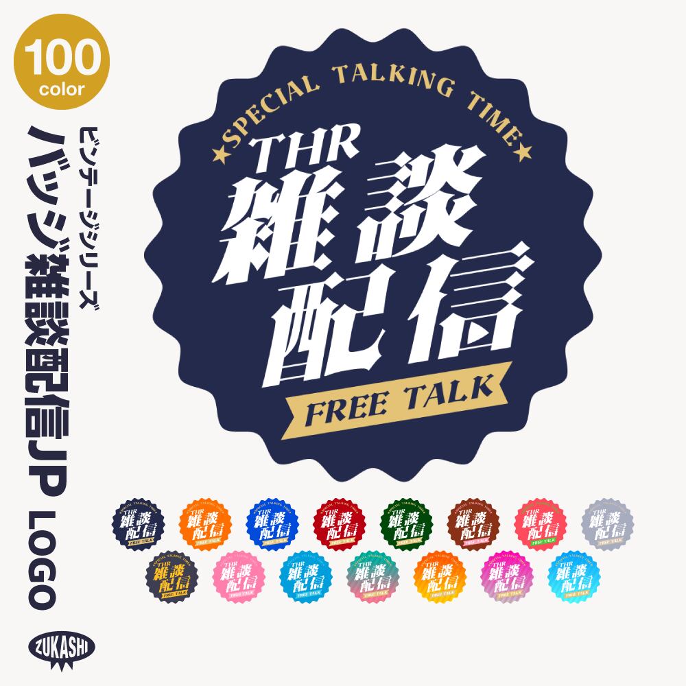 バッジ雑談配信ロゴJP ビンテージシリーズ【フリー素材・サムネ素材】